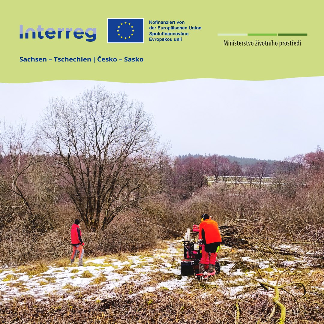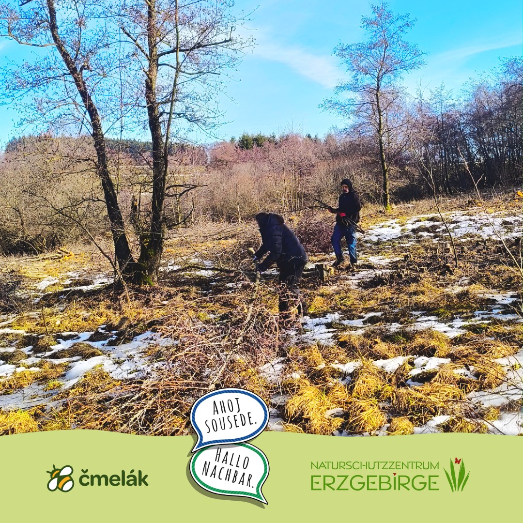 V rámci společné péče o přírodní lokality jsme vyrazili k našim kolegům z Naturschutzzentrum Erzgebirge. Společně jsme vyřezávali náletové dřeviny na místě, kde brzy vznikne louka určená k sečení.