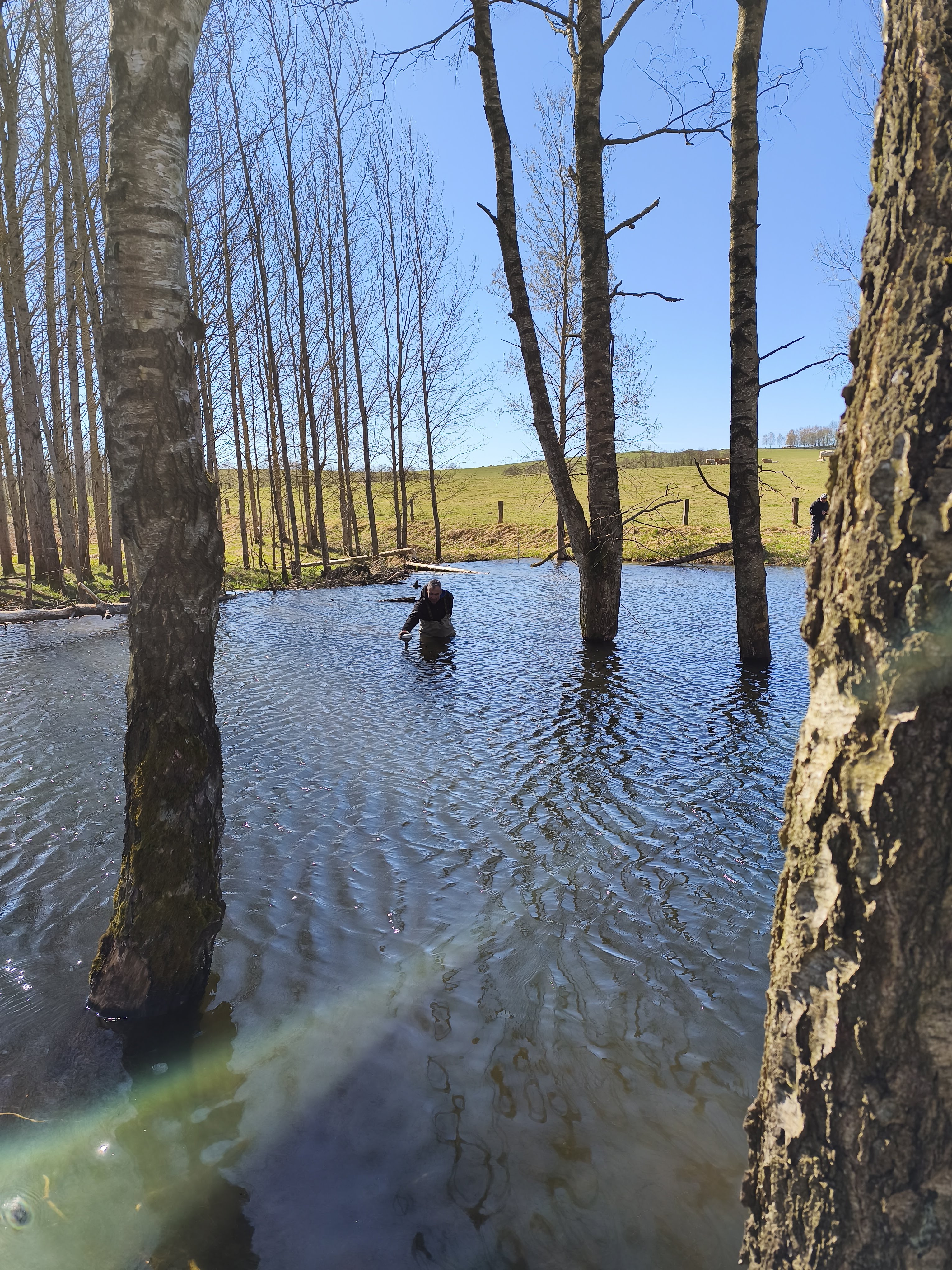 Od 10:00 začal tým ČVUT připravovat potřebné vybavení pro sběr dat v bobřích mokřadech. To zahrnovalo zaměření obvodu bobřích zdrží pomocí GPS a systematické měření hloubky vody v síti bodů, které zachycuje prostorovou variabilitu hloubky vody uvnitř bobřích zdrží. Cílem bylo změřit objem vody v bobřích mokřadech. Tým dále sbíral data z fotopastí umístěných v terénu, které monitorují aktivitu bobrů, a z tlakových senzorů instalovaných pro sledování výšky hladiny vody. Kolem 16:00 se tým přesunul na druhou lokalitu – Liščí potok – aby zkontroloval senzory a fotopasti a stáhl z nich data. Filmař se ke skupině připojil, aby zdokumentoval tyto aktivity a provedl rozhovory s týmem. Tento záběrový materiál přispěje k plánovanému krátkému filmu projektu o bobrových hrázích.