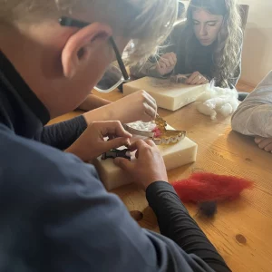 Odpoledne jsme pokračovali do Lesné na workshop řemesel. Poté, co jsme se dozvěděli, jak lidé dříve žili a pracovali, mohli se žáci kreativně vyřádit při plstění a vytvořit si malou památku. Čerstvý vzduch a pohyb nám pak nabídl připravený parkur, než jsme unavení a ohromeni tolika dojmy padli do hotelových postelí.