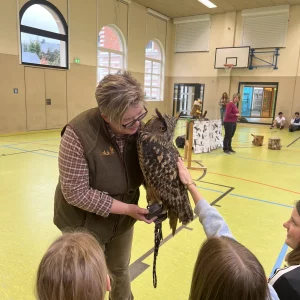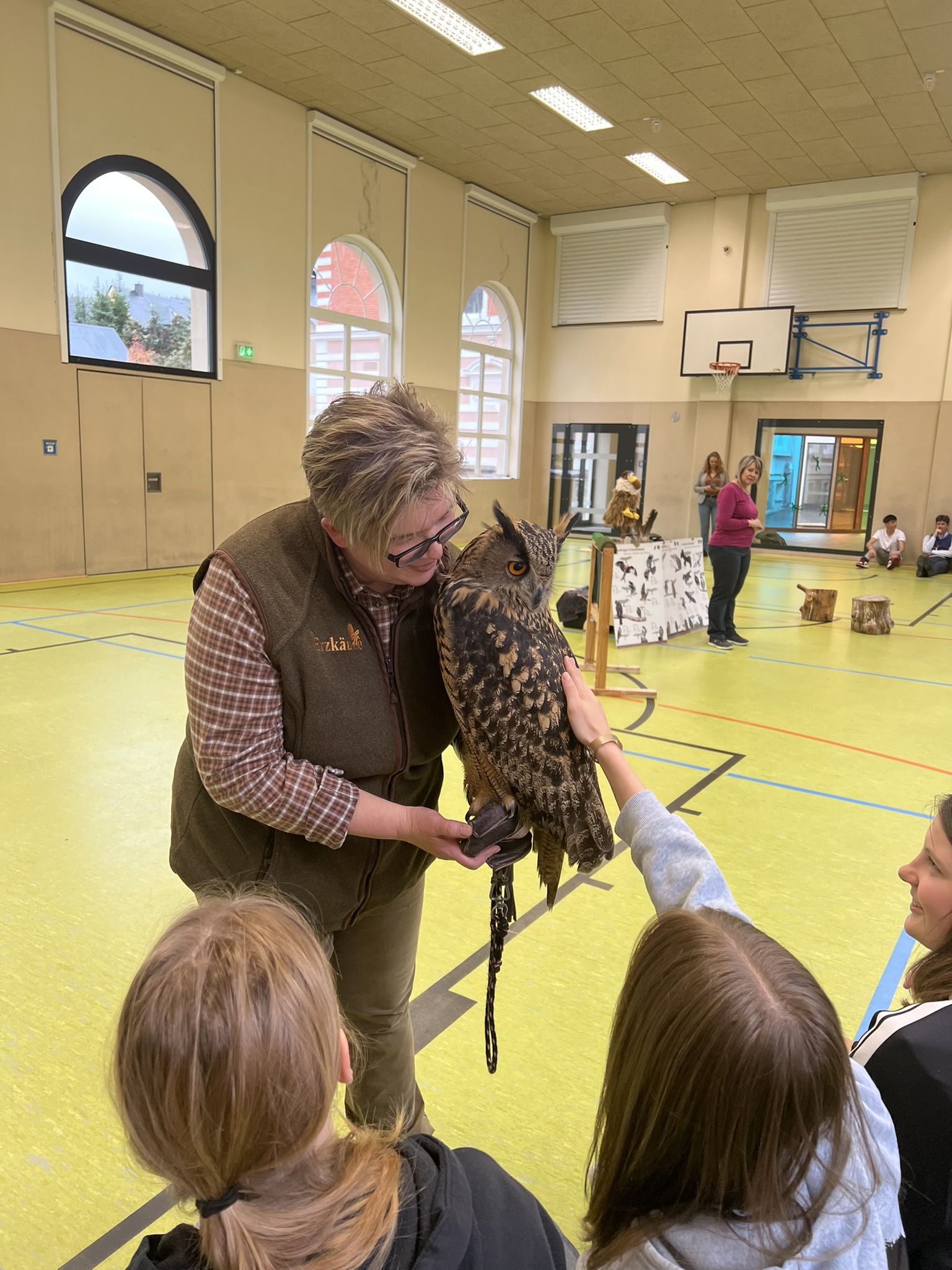 Po obědě, který s láskou připravil spolek na podporu nové střední školy v Crottendorfu – na tomto místě jim patří velké poděkování! – jsme dostali zvláštní návštěvu od okřídlených přátel. Paní Neubertová představila sovy a nabídla fascinující pohled do ochrany dravců a souvisejících profesních oborů. Pro všechny účastníky to byl působivý a poučný zážitek.