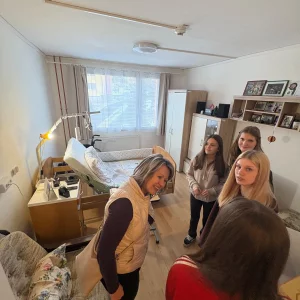Nejprve byla na programu návštěva pečovatelského domu Sociální služby v Chomutově. Tam jsme se mohli podílet na pestře zařízeném každodenním životě obyvatel. Senioři mají k dispozici řadu aktivit – sportovní, společenské a duševní nabídky zajišťují rozmanitost a podporují kondici. Součástí stálé nabídky služeb je také kadeřnictví a pedikúra. Obzvláště působivý je mezigenerační koncept: v létě si zdatní obyvatelé sdílejí venkovní prostory s mateřskou školou a školou. Toto soužití oživuje každodenní život, vytváří příležitosti k setkávání a udržuje seniory aktivní a fit.