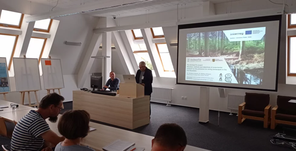 Dr. Hemker hovořila o struktuře, metodách a cílech přeshraniční spolupráce v oblasti výzkumu míst prehistorické těžby cínu v Krušnohoří, přičemž představila projekt ArchaeoTin – Archeologie ve světovém dědictví – krajiny dobývání cínu. Ten si klade za cíl poukázat na celoevropský význam krušnohorského cínu od doby bronzové až po pravěk a následně zpřístupnit nálezy široké i odborné veřejnosti formou putovní výstavy. Unikátnost tohoto projektu tkví v jeho interdisciplinárním pojetí, do jeho řešení jsou zapojeny české a saské odborné ústavy, univerzity, muzea a ostatní asociační partneři.