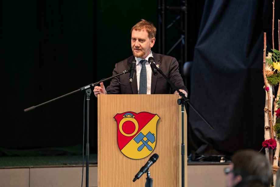Zahájení výstavy se zúčastnilo na 160 hostů, výstavu otevřel předseda saské vlády Michael Kretschmer. Další zdravice pronesla ministryně pro kulturu a turismus Barbara Klepsch, generální konzulka v Drážďanech Ivona Valhová, starostka obce Ehrenfriedersdorf Silke Franzl či vedoucí Zemského archeologického úřadu Sasko Regina Smolnik. Úvodní slova a slova díků proložilo vystoupení hornické skupiny "Bergmännischer Musikverein" Ehrenfriedersdorf e.V.