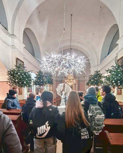 Exkurze v pondělí 15.12. se zaměřila na sklo a minerály. První zastávkou na cestě ze Žitavy do Liberce byl kunratický křišťálový kostel, který vyzdobila nedaleká sklárna Pačinek skleněnými lustry a dalšími objekty, jako jsou například korunovační klenoty z uranového skla, monstrance se zatavenou kůstkou svaté Zdislavy nebo plastiky reagující na současná témata, například koronavirus. Exkurze pokračovala do Galerie Granát v Turnově, kde se žáci dozvěděli něco o historii, těžbě a zpracování českého granátu a prohlédli si současné i historické šperky z tohoto unikátního českého minerálu.