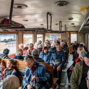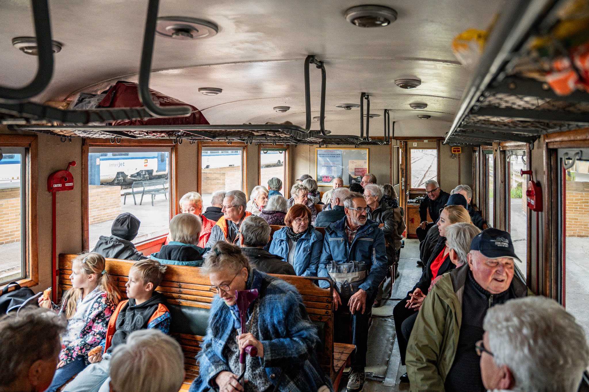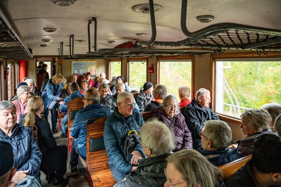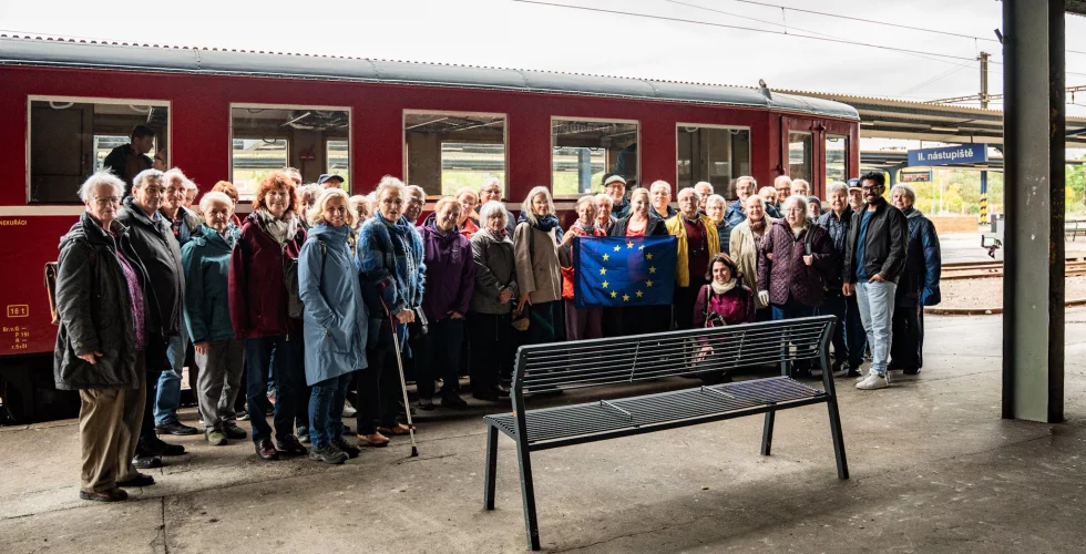 Edukační akce pro seniory z Freibergu dopravázené našimi projektovými partnery z Montanregionu Erzgebirge (Sophia Seyfert a Tim Fischer). Prohlídka přesunutého děkanského kostela v Mostě, následně návštěva Mlýnského dne v Lomu a závěrem prohlídky cisterciáckého kláštera v Oseku, s přesunem historickým vlakem Hurvínek po Moldavské dráze. Foto: Tim Fischer