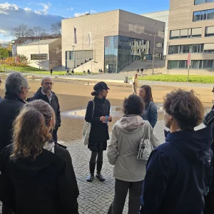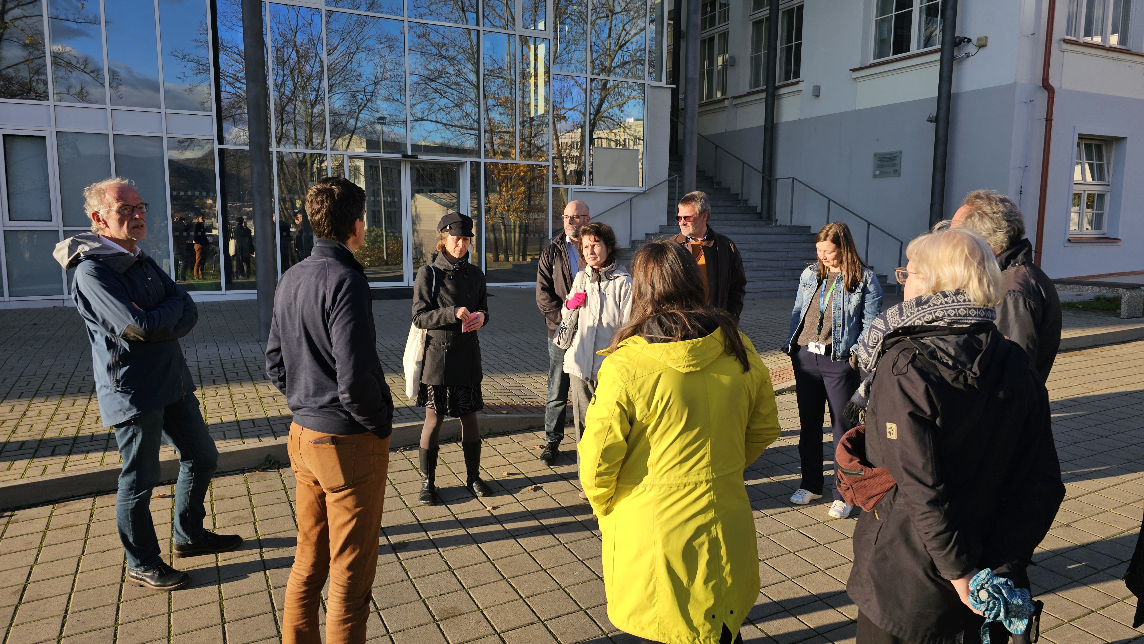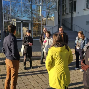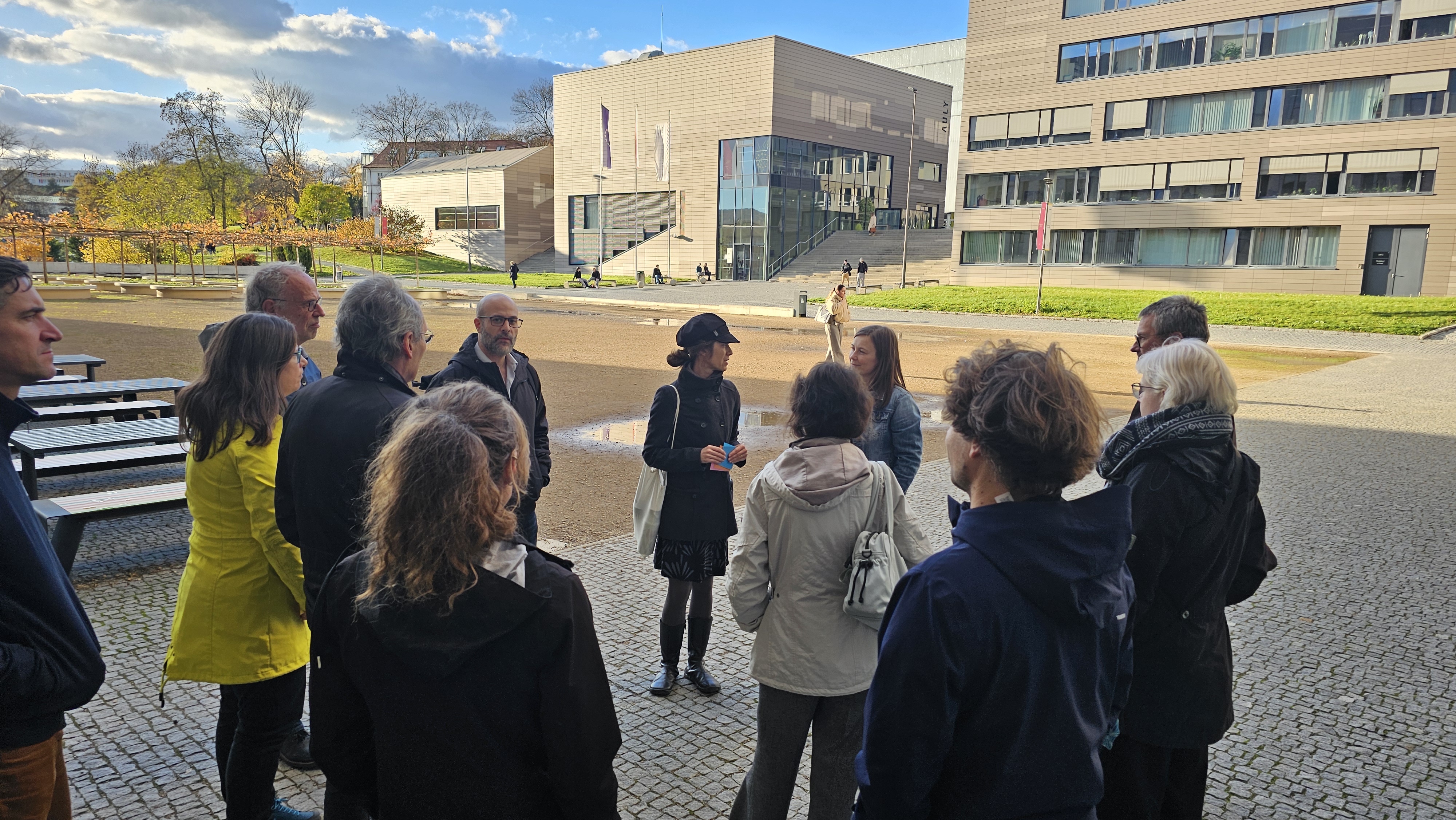 Po diskusi se účastníci seznámili s podrobnou prohlídkou areálu univerzity. Obzvláště působivá byla střecha nejnovější budovy univerzity, která kombinuje různé udržitelné technologie. Tam se solární energie využívá k ohřevu vody a výrobě energie pro budovu. Část střešní plochy je zazeleněna, což pomáhá zlepšit mikroklima. Kromě toho byla nad schodištěm postavena skleněná střecha, která dále snižuje spotřebu energie díky lepšímu využití denního světla.