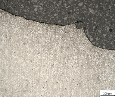 Ein gebrochener Bolzen kann selbst die leistungsstärkste Maschine zum Stillstand bringen. Die Firma RETOS VARNSDORF beauftragte daher die Experten der Technischen Universität Liberec (TUL) mit einer detaillierten fraktografischen Analyse. Das untersuchte Objekt war Teil der Antriebswelle eines Manipulatorarms, wo ein Bolzen in Kontakt mit Stellschrauben als Anschlag diente. Durch wiederholte stoßartige Belastung kam es zu einer Biegebeanspruchung des Bolzens, was letztendlich zu seinem Versagen führte. Die Experten der TUL deckten den Mechanismus der Bruchentstehung auf, überprüften die Werkstoffzusammensetzung sowie den Zustand der Wärmebehandlung und gaben Empfehlungen, wie ähnliche Ausfälle vermieden werden können. Eine wichtige vorbeugende Maßnahme ist das richtige Anziehen der Verbindungen und das exakte Aufliegen des Bolzens, wodurch Mikrobiegebeanspruchungen vermieden werden und die Lebensdauer der Vorrichtung verlängert wird. Makroaufnahmen: Die Makroaufnahmen des Bolzens zeigten deutlich die Spuren der wiederholten stoßartigen Beanspruchung auf den gefrästen Flächen. Die Ausbreitung des Bruchs erfolgte von beiden Seiten zur Mitte hin, wo es beim Überschreiten der Festigkeitsgrenze zum endgültigen Versagen kam. Fraktografie (REM-Aufnahmen) Auf der Bruchfläche wurden 4–5 μm breite Streifen gefunden, die typisch für Ermüdungsbrüche bei wechselnder Biegebeanspruchung sind. Im zentralen Teil des Bruchs waren Anzeichen einer Überlastung zu erkennen. Metallographische Analyse Vom Bolzen wurden Schliffe angefertigt. Es wurde eine Mischung aus Ferrit, Bainit und teilweise umgewandeltem Perlit festgestellt. Primäre Risse entstanden vor allem im Bereich des Radius. Sekundäre Risse breiteten sich bevorzugt in der bainitischen Struktur aus, die eine geringere Zähigkeit aufweist. EBSD- und EDX-Analyse Die EBSD-Karten zeigten eine Einsatzhärteschicht bis zu einer Tiefe von 0,8 mm mit martensitischer Struktur, die anschließend in eine ferritisch-bainitische und weiter in eine ferritisch-perlitische Struktur übergeht. Die chemische Zusammensetzung gemäß der EDX-Analyse entsprach der Norm ČSN 14220, der Kohlenstoffgehalt wurde auf ca. 0,25 % geschätzt. Ergebnisse und Interpretation Die fraktografische Analyse ergab, dass das Versagen des Bolzens durch eine geringe Zyklenermüdung bei wechselnder Biegung verursacht wurde, wobei die Risse im Bereich des Radius und 3 mm darüber entstanden. Das Material und die Wärmebehandlung entsprachen den vorgeschriebenen Normen, sodass der Defekt nicht auf einen Materialfehler oder eine fehlerhafte Wärmebehandlung zurückzuführen war. Die wahrscheinliche Ursache für das Versagen war eine unzureichend angezogene Mutter, wodurch der Bolzen nicht fest an der gefrästen Fläche der Welle anlag. Dies führte zu einer stoßartigen Beanspruchung, was nach und nach zur Ausbreitung eines Ermüdungsrisses führte. Zur Vermeidung solcher Schadensfälle ist es daher entscheidend, die richtige Anzugskraft der Verbindungen und den präzisen Sitz des Bolzens sicherzustellen, wodurch die Entstehung von Mikroverformungen verhindert und die Lebensdauer der gesamten Vorrichtung verlängert wird.
