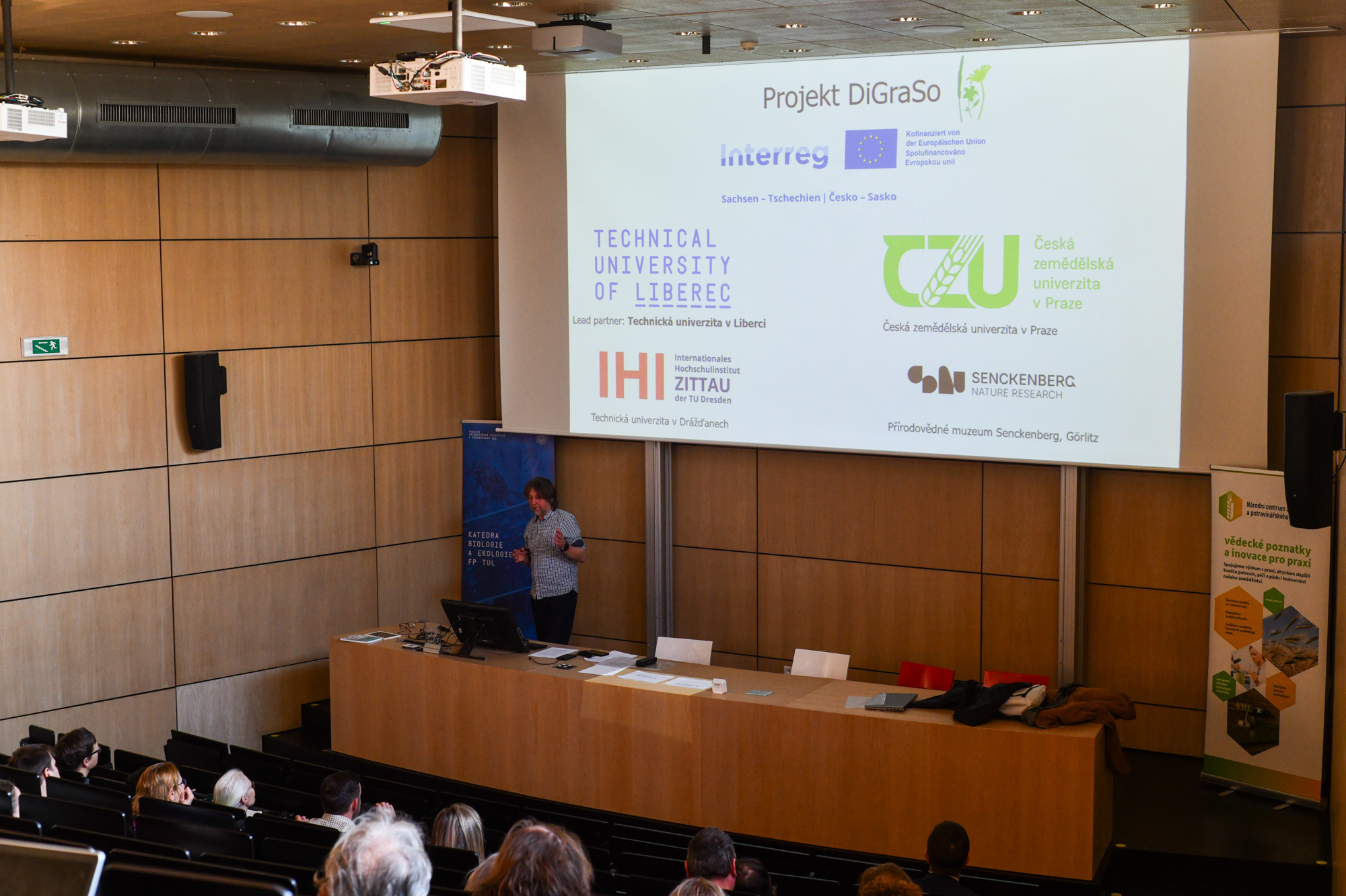 Im Rahmen des grenzüberschreitenden Projekts DiGraSo (Interreg Tschechien–Sachsen) fand am 20.–21. Januar 2026 an der Technischen Universität Liberec die fachliche Konferenz Ökologie des Grünlands X. statt. Die Konferenz wurde vom Lehrstuhl für Biologie und Ökologie der Fakultät für Naturwissenschaften, Geisteswissenschaften und Pädagogik der TUL in Zusammenarbeit mit dem Nationalen Zentrum für landwirtschaftliche und lebensmittelbezogene Forschung organisiert. Die Konferenz knüpfte an die langjährige Tradition fachlicher Treffen von Expertinnen und Experten auf dem Gebiet der Grünlandforschung an und widmete sich der Bewirtschaftung von Grünland, seiner Biodiversität sowie einem nachhaltigen Management aus Sicht der Landwirtschaft und des Naturschutzes. Ein bedeutender Teil des Programms war dem Thema regionaler Saatgutmischungen gewidmet, insbesondere deren Produktion, Nutzung und Bedeutung für die Wiederherstellung und Förderung der Artenvielfalt von Grünlandflächen. Die Konferenz umfasste Fachvorträge, eine Postersession sowie Diskussionen zu aktuellen Forschungsergebnissen im Bereich der Grünlandforschung und deren praktischer Anwendung. Die Konferenz wurde als öffentliche fachliche Aktivität im Rahmen des Projekts DiGraSo durchgeführt und trug zur Erreichung seiner Ziele im Bereich des Wissenstransfers und des fachlichen Austauschs bei. (Fotos Tomáš Junek)