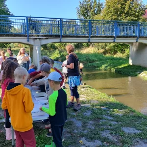Die folgenden Projekttage folgten dem bewährten Ablauf der vorherigen. Getreu dem Motto „Ein Fluss ist nicht nur Wasser“ lernten die Kinder, was ein Fluss alles zu bieten hat. Von den vorgestellten Bereichen – der Makrowelt (dem Leben der Wirbellosen im Wasser), der Mikrowelt (dem Leben mikroskopischer Organismen im Wasser), der Wasserchemie und der hydromorphologischen Betrachtung des Flusses – interessierte sie die Makrowelt am meisten.
