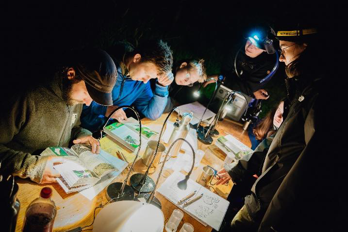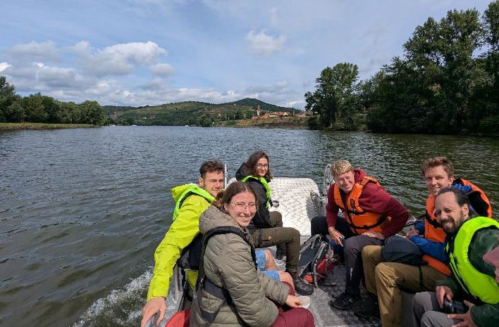ČSOP-Lager in der Nähe der Siedlung Březina und des Milleschauer Bach (Milešovský potok), einem Nebenfluss der Elbe, Litoměřice und Umgebung Die Teilnehmer verbrachten eine Woche auf einem einfachen Lagerplatz mit Natur-Infrastruktur – Quellwasser, Kochen auf dem Herd und abendliche Lagerfeuer mit Liedern. Dieser Lebensstil trug zum Zusammenhalt des Teams bei und stärkte den Teamgeist. Neben der Entfernung invasiver Arten war das Programm im Bereich Artenüberwachung und -lernen sehr vielfältig: • Nächtliches Insektenfangen und Artenbestimmung mit dem Entomologen Ronny Gutzeit (NaJu). • Fledermausbeobachtung mit Borek Frank (ČSOP) mittels Echolots. • Exkursion zum Kalvarienberg – Beobachtung von Europäischen Gottesanbeterinnen, Schlingnattern und Smaragdeidechsen. • Hydrobiologische Übung am Milleschaeuer Bach – Bestimmung des ökologischen Zustands anhand des Makrozootops. • Schifffahrt auf der Elbe mit der Wasserschutzpolizei – Diskussion über die Auswirkungen von Flussregulierung und Wehren. Das Programm umfasste auch kulturelle und regionale Aktivitäten: einen Besuch der Burg Kostomlaty, einen Aufstieg zum Aussichtsturm Zvon, einen Ausflug zum Freilichtmuseum Zubrnice und eine Stadtrundfahrt durch Litoměřice auf den Spuren vom Dichter Karel Hynek Mácha. Zur Abwechslung gab es Aktivitäten im Seilpark in einem Eschenwald, eine Raubtiervorführung und einen Erste-Hilfe-Kurs in der Natur unter der Leitung von Dominika Círusová (ČSOP). Die sprachliche Zusammenarbeit verlief reibungslos – neben Tschechisch und Deutsch kommunizierten die Teilnehmer auch auf Englisch und lernten grundlegende Redewendungen voneinander. Das Camp stärkte grenzüberschreitende Freundschaften, weckte das Interesse am Naturschutz und zeigte, wie ein praktisches Umweltbildungsprogramm mit dem tschechisch-deutschen Austausch verknüpft werden kann.