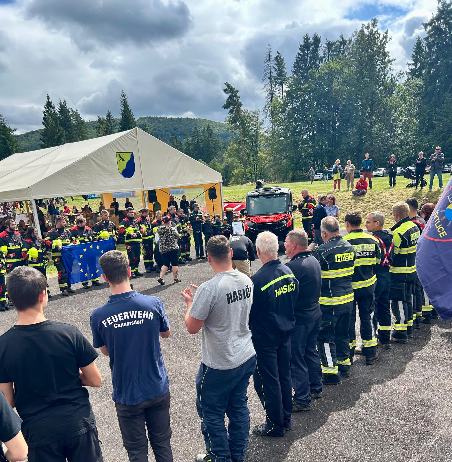 Im Rahmen einer Informationsveranstaltung für die Öffentlichkeit und die Kytlická-Brücke wurde den Feuerwehrleuten der Gemeinde Kytlice im Rahmen des Projekts „Gemeinsam gegen Waldbrände“ ein neu angeschafftes Quad übergeben. Die feierliche Übergabe wurde vom Bürgermeister der Gemeinde Kytlice und Feuerwehrchef Jan Havránek eröffnet. Sie begrüßten die anwesenden Gäste sowie Vertreter befreundeter Feuerwehren aus den umliegenden Gemeinden und Städten – Chřibská, Česká Kamenice, Hřensko, Dobkovice und anderen. Der Bürgermeister stellte das neue Quad vor und übergab symbolisch die Schlüssel an die jungen Feuerwehrleute. Im Anschluss an die Übergabe sprach Philipp Gemser, Vertreter des Projektpartners Gemainde Gohrisch, und dankte für die Zusammenarbeit mit dem Hauptpartner, der Gemeinde Kytlice, und deren Feuerwehrleuten. Gleichzeitig überreichte er den Feuerwehrleuten als Dankeschön Feuerwehrhelme. Im Anschluss daran fand eine Besichtigung des neuen Quads statt, sowohl für die Feuerwehr als auch für die Öffentlichkeit. Am Nachmittag wurde im Gebiet Lesní rybník die Kytlická-Brücke ausgetragen. Dabei mussten die Teilnehmer eine bewegliche Brücke vom Start bis zum Ziel überqueren, ohne in den Teich zu fallen – in Anwesenheit der Feuerwehr. Die Veranstaltung fand in Zusammenarbeit mit deutschen Kollegen statt und wurde von beiden Projektpartnern positiv bewertet.