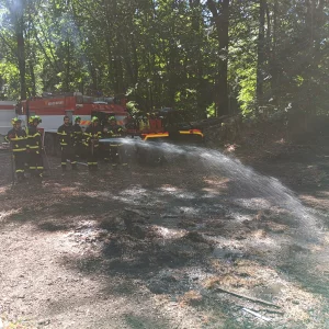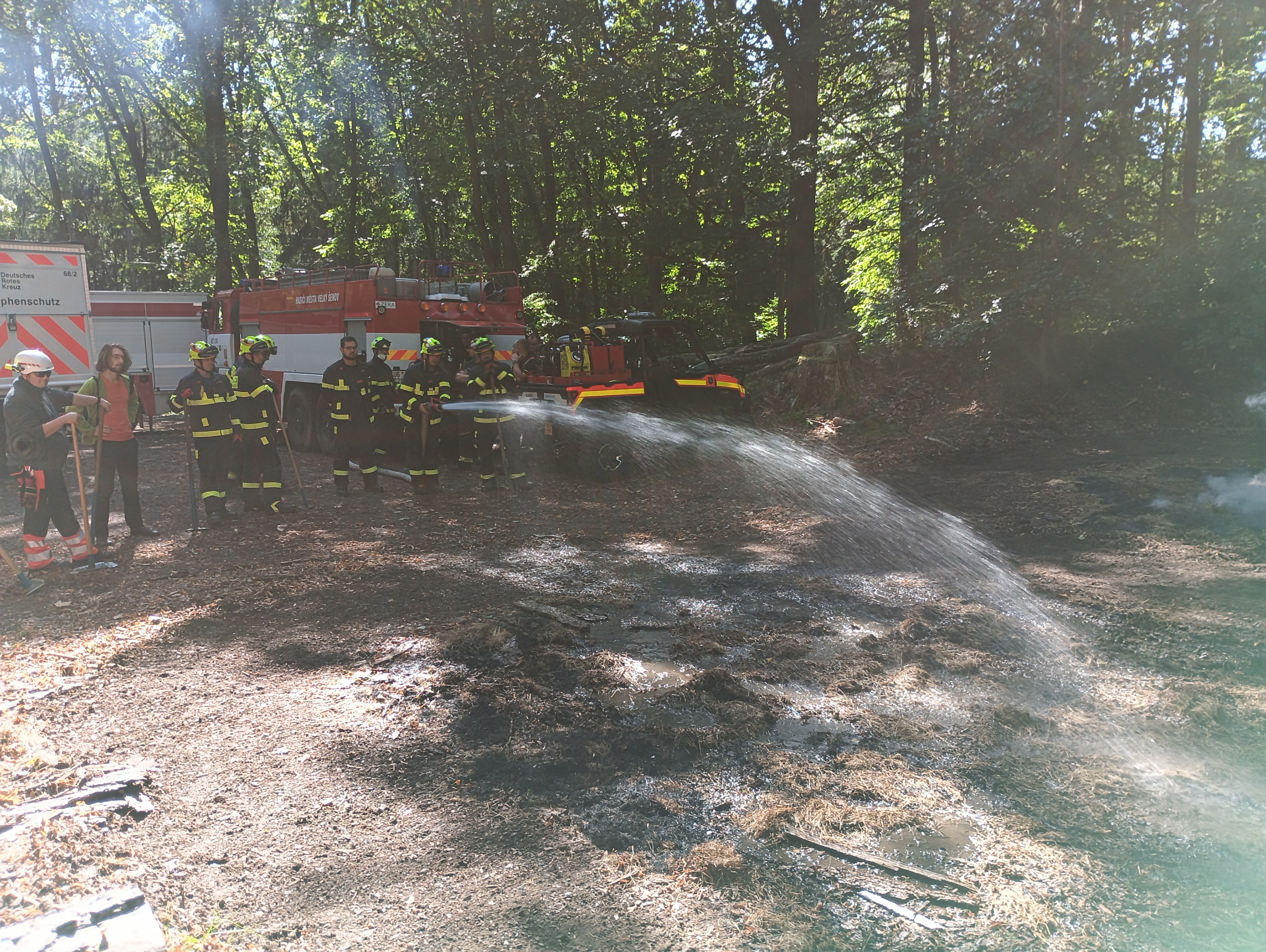Gemeinsame Übung zum Thema Maßnahmen gegen Waldbrände einschließlich Fernwassertransport durch den Wald, unzugängliches Gelände