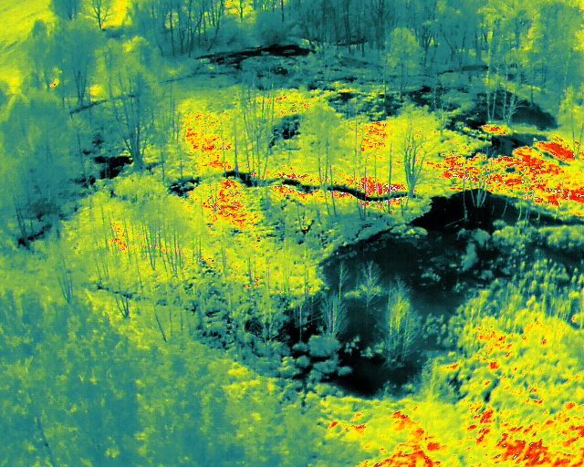 Während des ganztägigen Feldeinsatzes wurden die einzelnen Biberstaudämme im Feuchtgebiet geodätisch vermessen, die Zu- und Abflüsse zum bzw. vom Biberfeuchtgebiet an Profilen gemessen, an denen das Team der ČVUT die Wasserstände kontinuierlich überwacht. Mithilfe von Drohnen, die mit LIDAR und einer Wärmebildkamera ausgestattet waren, wurden ein digitales Geländemodell, eine Orthofotokarte sowie eine Reihe gewöhnlicher und thermischer Aufnahmen und Videos erstellt.
