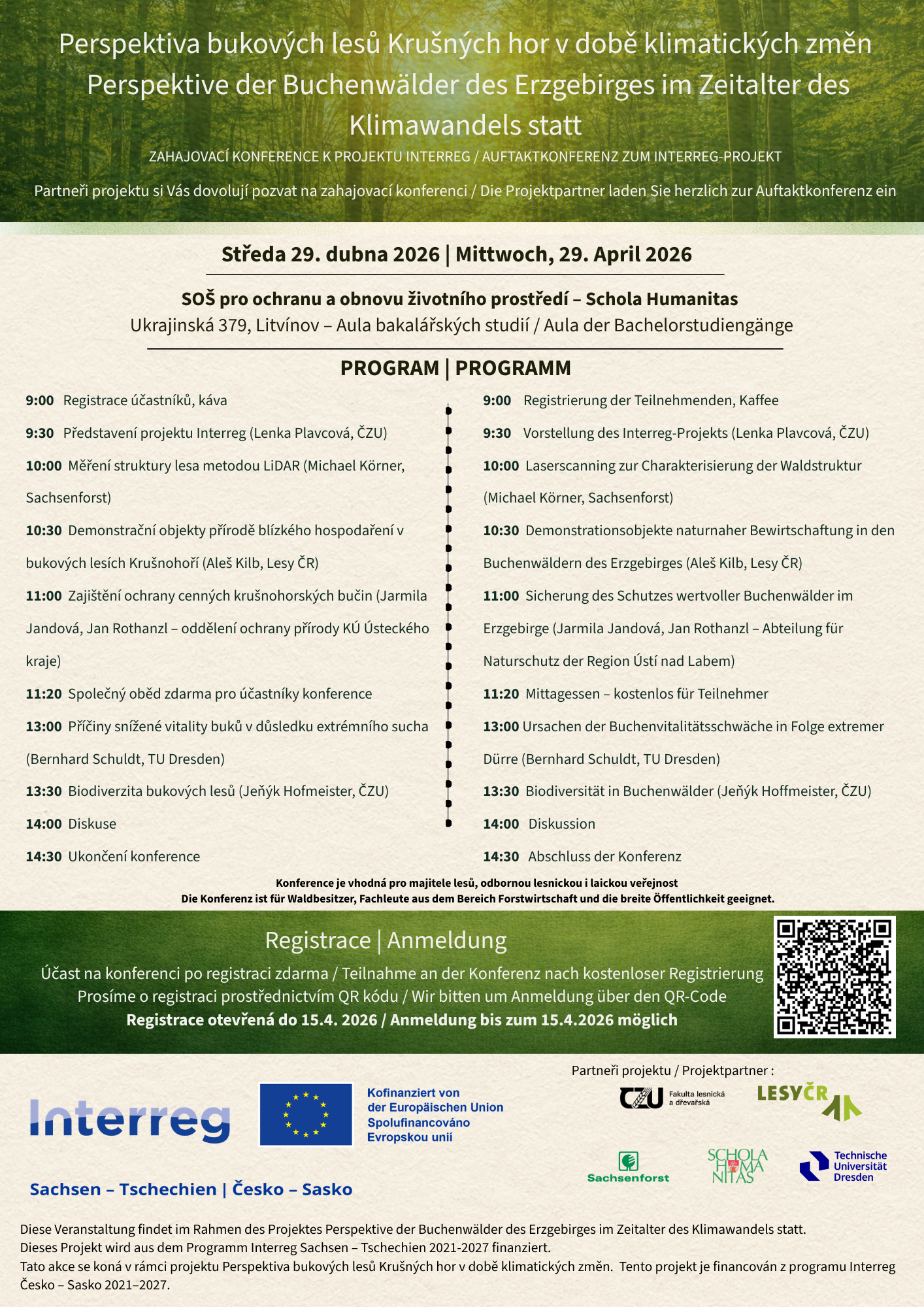 Die Projektpartner laden zur Auftaktkonferenz des Projekts „Perspektive der Buchenwälder des Erzgebirges im Zeitalter des Klimawandels“ ein, das im Rahmen des Programms Interreg Sachsen – Tschechien 2021–2027 umgesetzt wird.