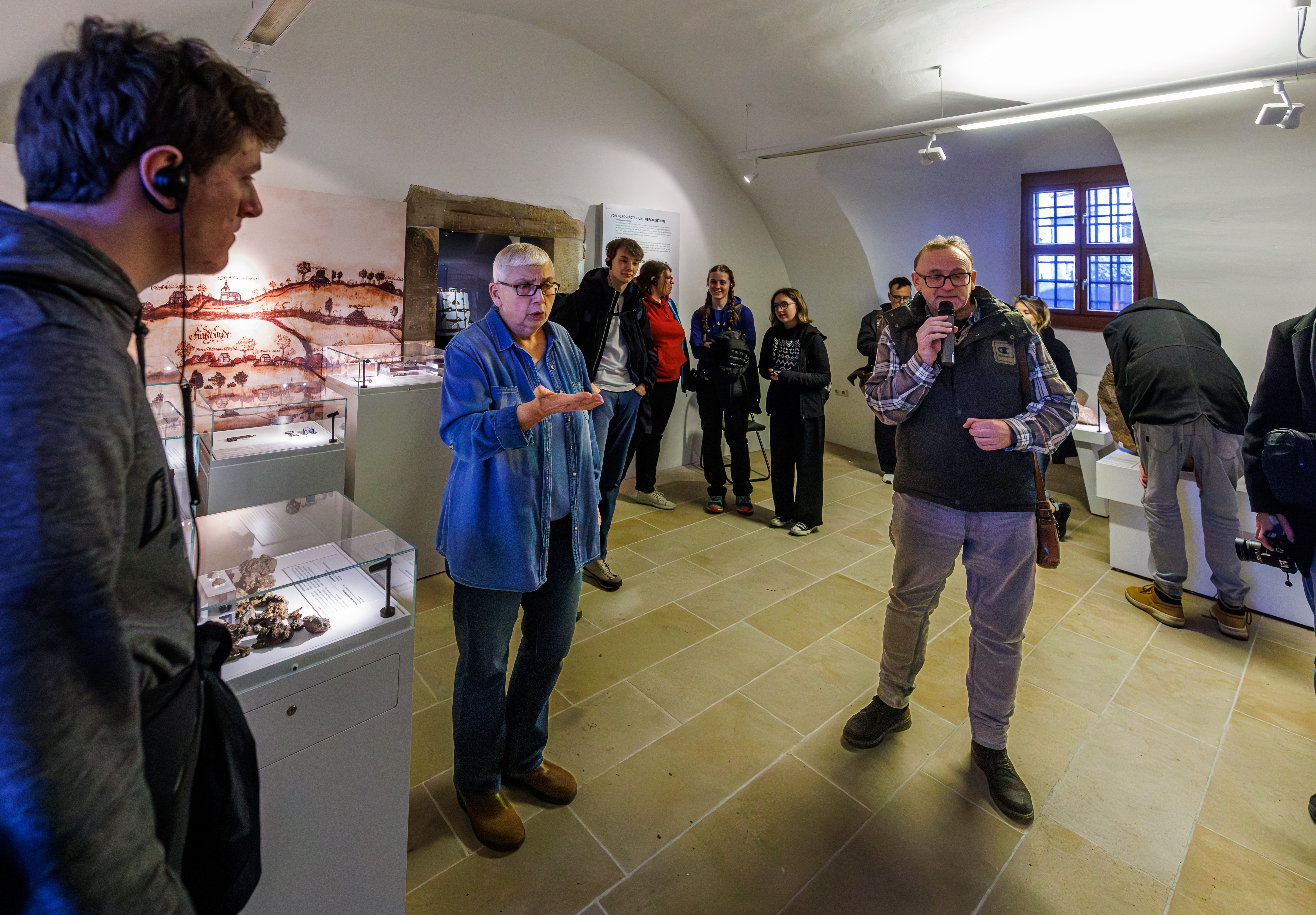Frau Hemker hielt zunächst einen einführenden Vortrag zum aktuellen ArchaeoTin-Projekt sowie über die mittelalterlichen Bergwerke von Dippoldiswalde, die Bestandteil des UNESCO Weltkulturerbes Montanregion Erzgebirge sind. Im Anschluss daran führte Frau Hemker durch die Ausstellung im MiBERZ. Sie wurde dabei vom Dolmetscher Sven Dietrich, der die Exkursion des Freundeskreises ins Osterzgebirge organisiert hatte, bestens unterstützt. Die TeilnehmerInnen zeigten sich begeistert von den Arbeiten und Ergebnissen des ArchaeoTin-Projektes sowie der Ausstellung zum mittelalterlichen Bergbau im MiBERZ, die ein Ergebnis des ArchaeoMontan-Projektes von 2018 ist.