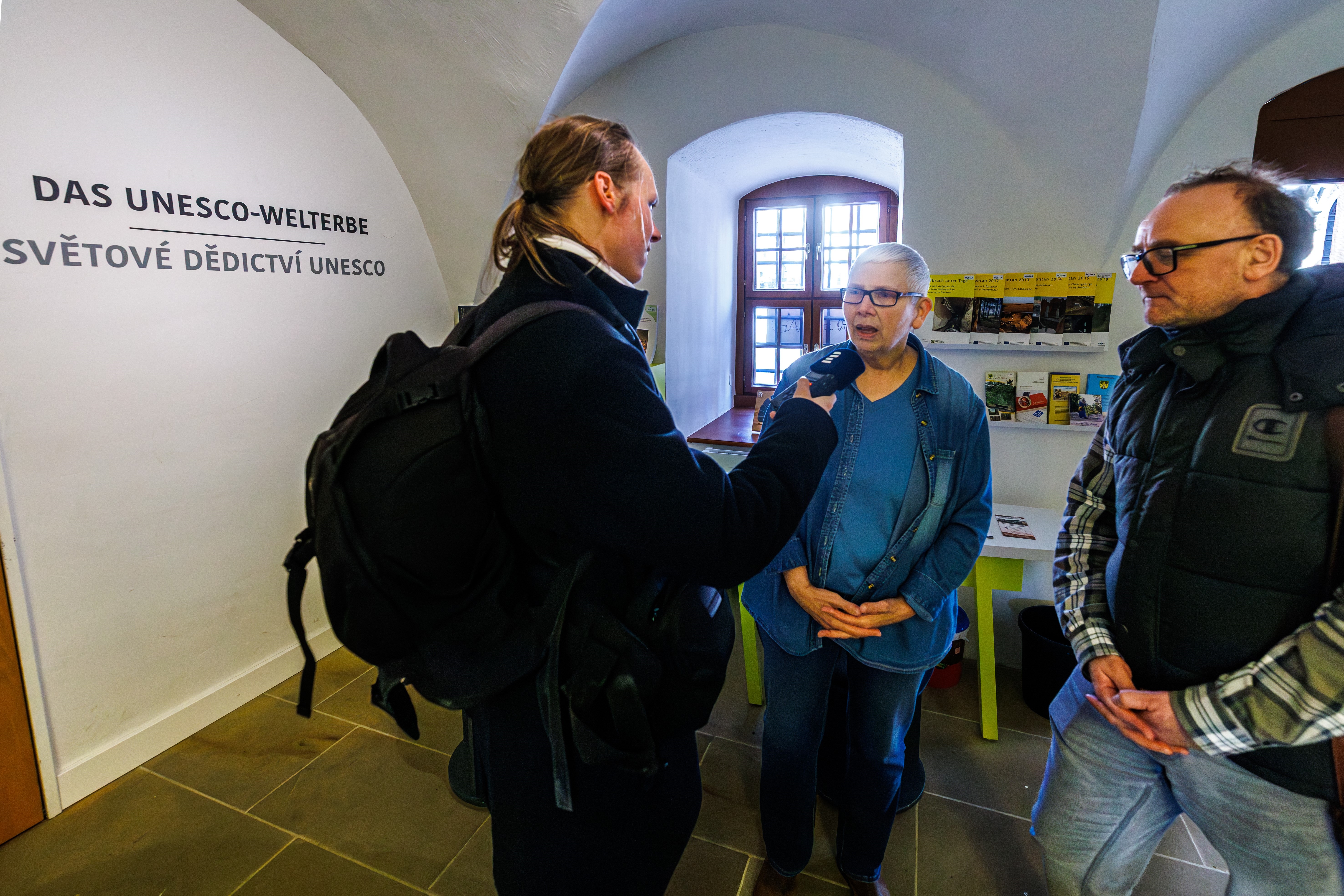 Zum Abschluss gab Frau Hemker einem Reporter des Tschechischen Rundfunks, der ebenfalls an der Exkursion teilnahm, ein Interview.