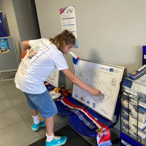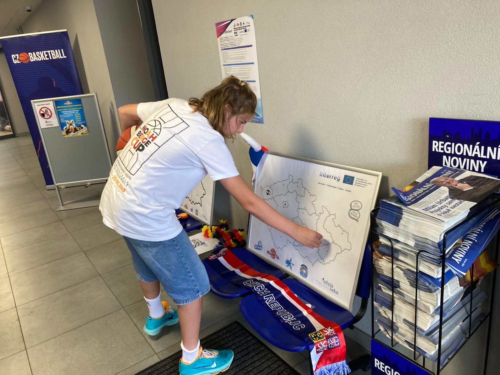 Während der Pausen zwischen den Spielen hatten die Spieler die Möglichkeit, ihre Kenntnisse der Geografie Tschechiens und Deutschlands unter der Anleitung eines Koordinators des Bildungsvereins Schola Ludus und des Lead-Partners Dresden Titans zu erproben.