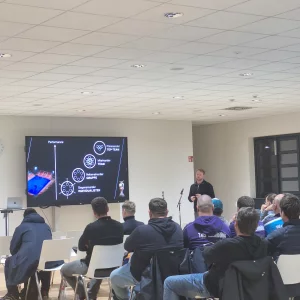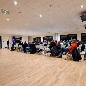 Zu Gast war diesmal André Henning, Bundestrainer der deutschen Hockey-Nationalmannschaft. In der rund einstündigen Veranstaltung erhielten die Zuhörer wertvollen Input zum Thema „Spielerpartizipation“. Praxisnahe Einblicke in seine Arbeit zeigten interessante Ansätze auf, die auch im Fußball anwendbar sind. Seine positive Energie sorgte für großes Interesse an dem Thema und einen intensiven Austausch im Anschluss an den Vortrag.