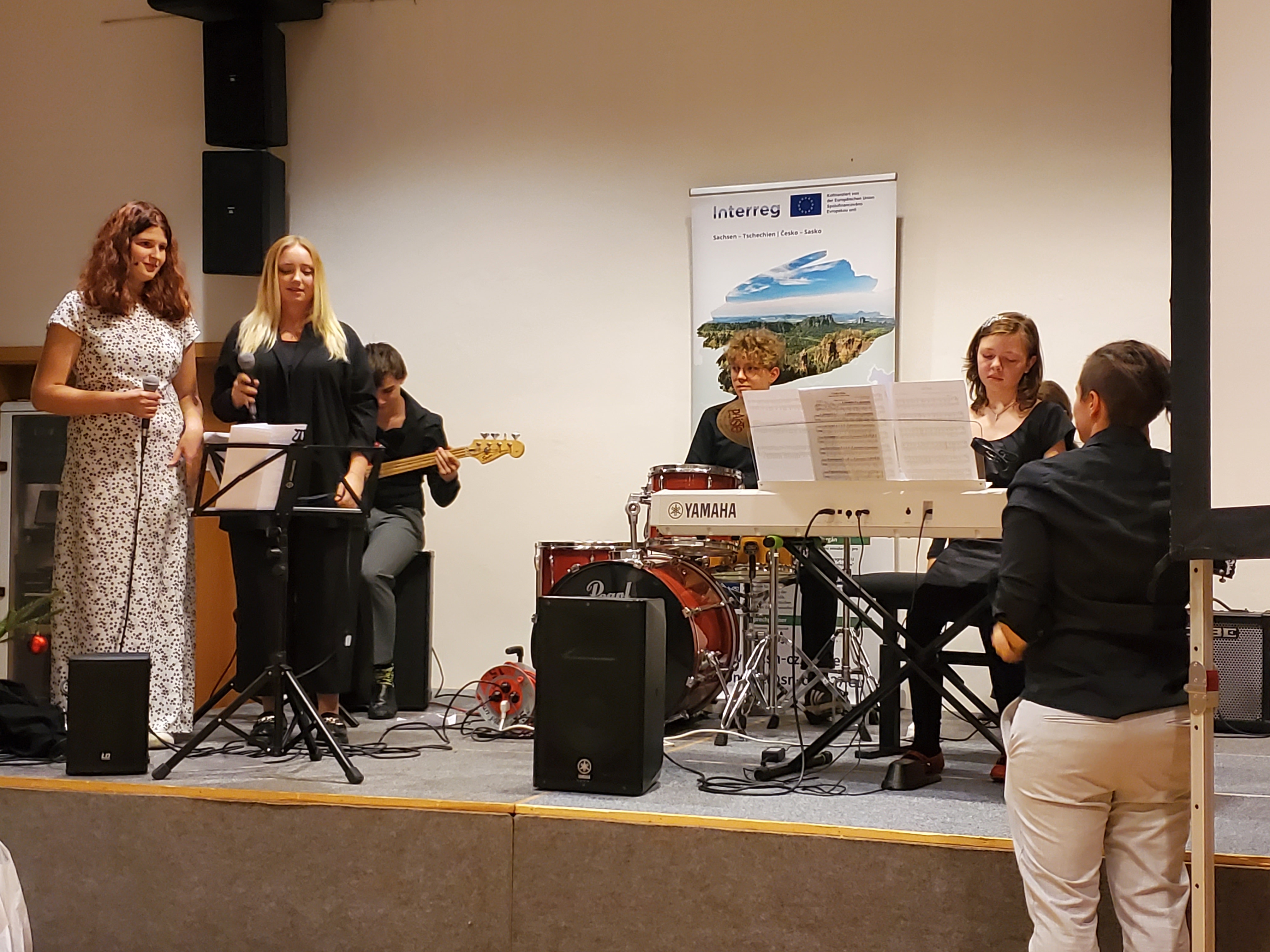 Im Rahmen des Begleitausschusses am 27.11.2024 bekamen wir die Möglichkeit unser Projekt „Neue grenzüberschreitende Impulse für die musische Bildung 2024 – 2027“ kurz vorzustellen. Nach den beiden musikalischen Eröffnungstücken „Krönungsintrada“ von J. I. Linek und dem „Menuet in D“ von G. F. Händel folgte eine kurze mündliche Darstellung zu unserem Projekt sowie ein Klavierstück für 4 Hände und eine Gesangsinterpretation aus dem Rock-Pop-Bereich als Vorschau auf kommende Projektaktivitäten.