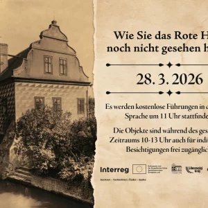 Nutzen Sie eine einmalige Gelegenheit nicht nur die historischen Räumlichkeiten des Roten Hauses, sondern auch die anliegenden Objekte durchzulaufen und lernen Sie die geplante Veränderung der Anlage kennen. Die Innenräume sind vollständig geräumt und warten auf den Beginn der Sanierungsarbeiten, die im Frühjahr dieses Jahres starten. Es werden kostenlose Führungen stattfinden – in deutscher Sprache um 11 Uhr nur für Angemeldete. Die Objekte sind während des gesamten Zeitraums auch für individuelle Besichtigungen frei zugänglich. Einladung zu dieser Veranstaltung ist im Anhang.