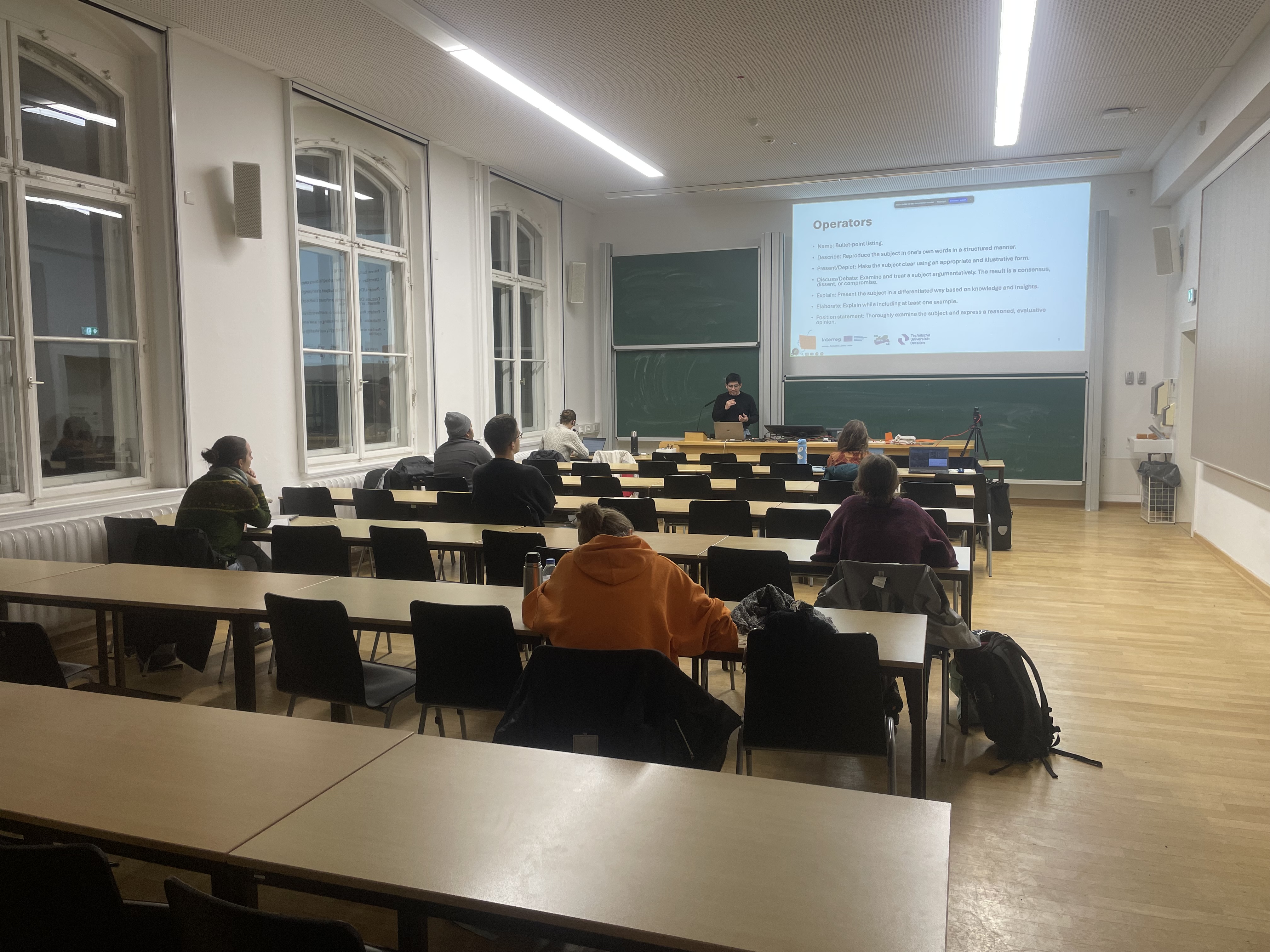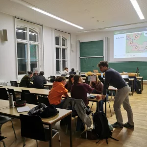 In einem hybriden Format – sowohl in Präsenz als auch online – nahmen die Studierenden an einem interaktiven, spielbasierten Zusammenfassungsformat teil. Dieses ermöglichte es, fachliche Inhalte aus unterschiedlichen Disziplinen und Perspektiven miteinander zu verknüpfen und den internationalen sowie interdisziplinären Charakter der Vorlesungsreihe nochmals hervorzuheben. Online wurden die Inhalte in einem Miroboard zusammen erarbeitet. in der Präsenz veranstaltung wurden die Studenten in zwei Gruppen eingeteilt, welche jeweils die Aufgabe hatten Tabellen für bestimmte antropogene Einflussfaktoren zu befüllen.