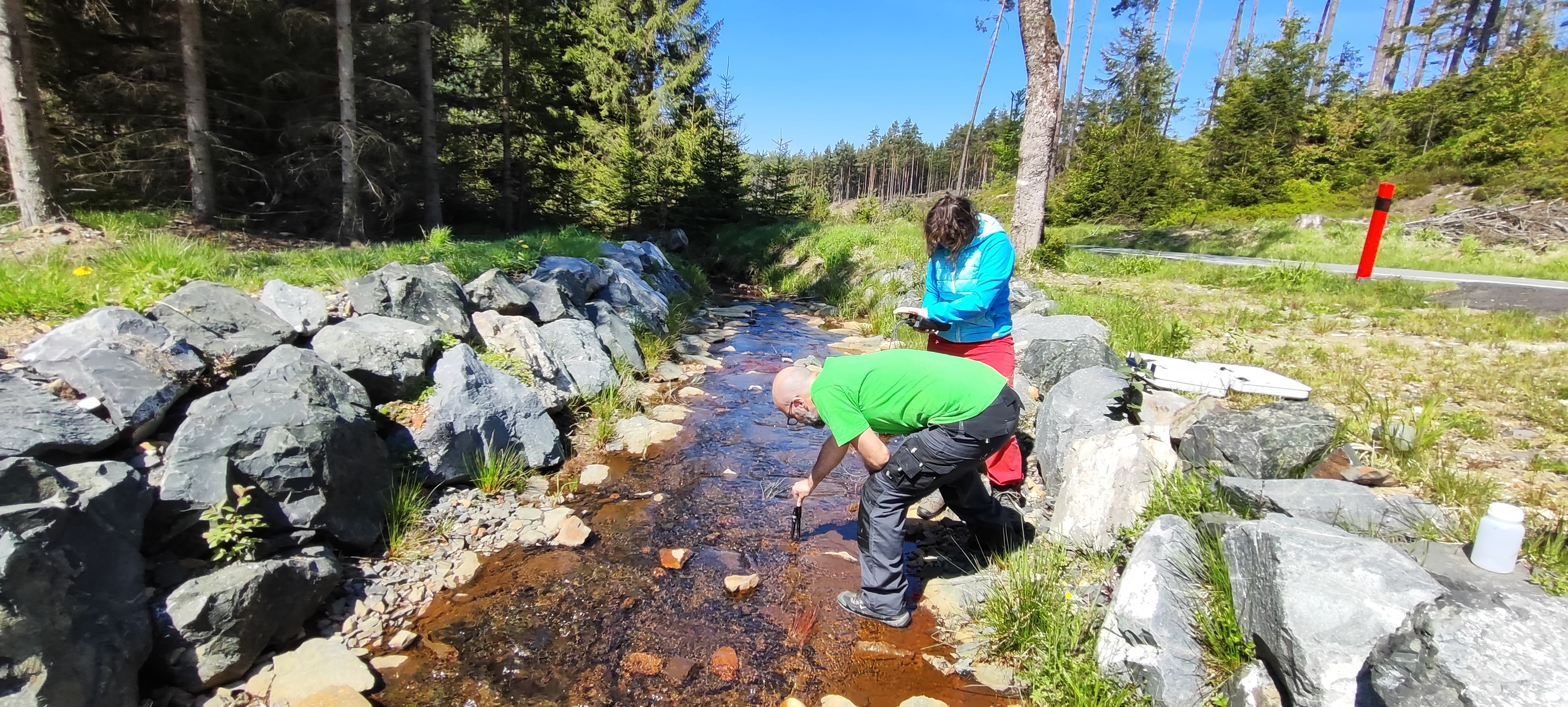 Vor Ort wurden mit einem Multimeter und drei Elektroden Wassertemperatur, pH-Wert, Leitfähigkeit und gelöster Sauerstoff an der Probenahmestelle gemessen. Zusätzlich wurden mit einer 360°-Kamera bzw. eine Drohne Photometrische Abtastungen der Probenahmestellen durchgeführt.