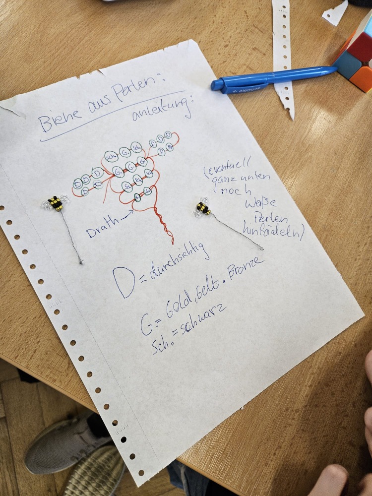 Die Schüler haben das Thema Bienen abgeschlossen. Sie haben Texte und Bilder für den Lapbook vorbereitet. Das Thema haben sie mit künstlerischen Aktivitäten ergänzt – einem Blumenarrangement mit einer Biene, einer Biene aus Perlen und der Herstellung einer Kerze aus Wachsplatten.