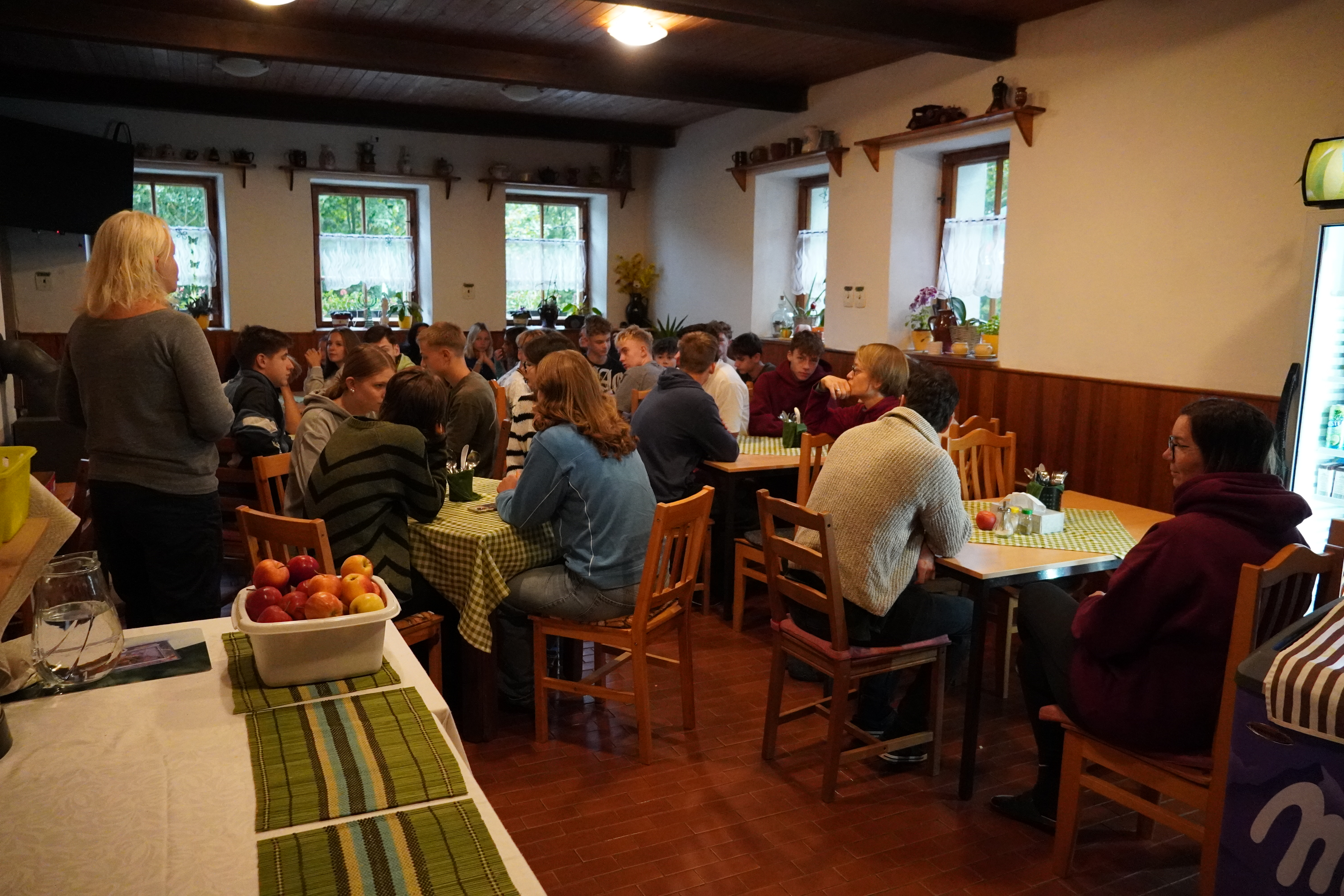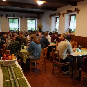 In den ersten Tagen lernten unsere Schüler die deutschen Schüler, die Umgebung und die Gegend kennen. Nachdem sie sich nach Interessen in gemischte Gruppen aufgeteilt und ein Thema gewählt hatten, begannen sie intensiv an ihren Präsentationen zu arbeiten, die sie am Ende der Woche den Lehrern und anderen Gruppen vorstellten. Die Berghütte verwandelte sich für viele Stunden in eine Medienwerkstatt. Neben Noten für ihre Präsentationen nahmen alle viele Erfahrungen und ein Lebkuchenherz nach Hause mit.