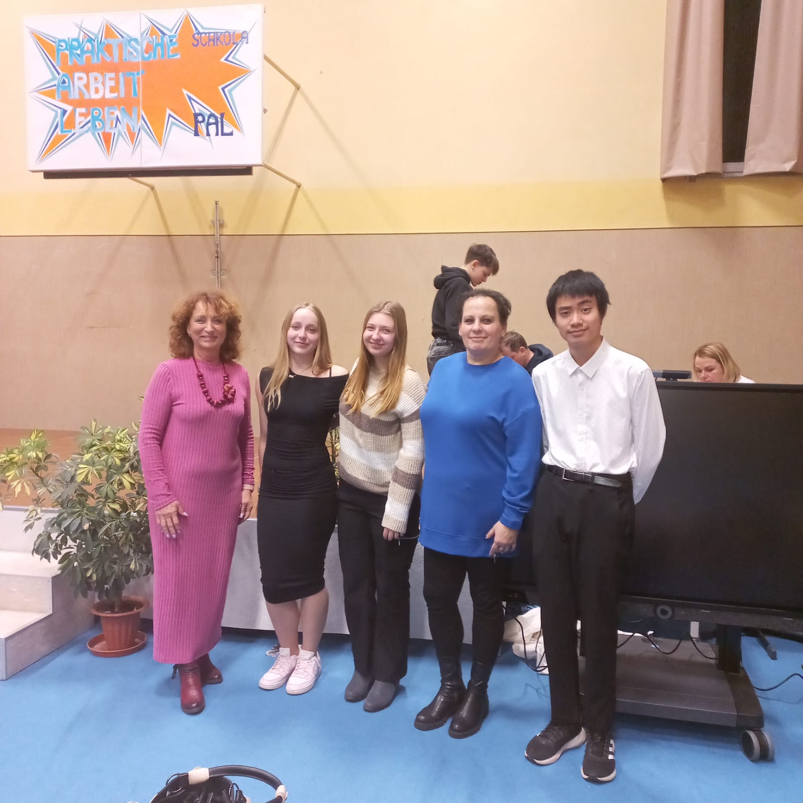 Die Schüler der Partnerschule präsentierten ihre Erkenntnisse aus den Fachpraktika in verschiedenen Institutionen und privaten Unternehmen. Im Rahmen der Präsentation stellten sie die Organisationen vor, in denen sie ihr Praktikum absolvierten, erläuterten konkrete Tätigkeiten, denen sie während des Praktikums nachgingen, und stellten auch die für die Durchführung der Praktika verantwortlichen Personen vor. Jedes Praktikum wurde durch eine Fotodokumentation ergänzt. Für unsere Schüler war dies eine sehr interessante Erfahrung; nach der Präsentation hatten sie Gelegenheit zur informellen Kommunikation mit ihren deutschen Mitschülern.