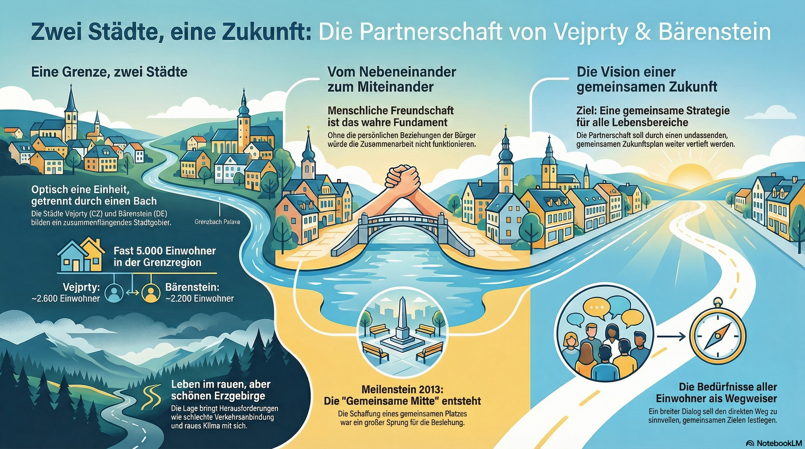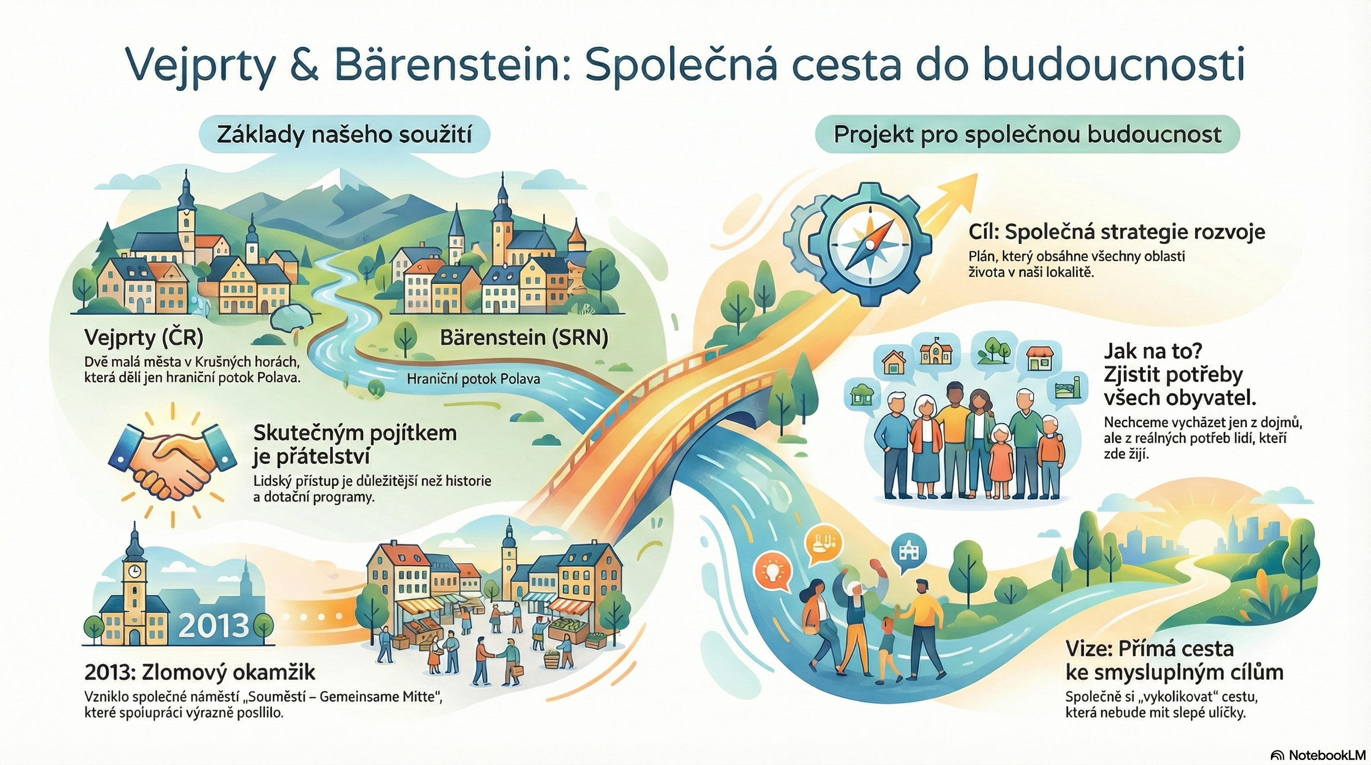 Ziel ihres Treffens war es, eine Arbeitsgruppe zu bilden, die sich aktiv an der analytischen Ausarbeitung eines gemeinsamen Entwicklungsdokuments für die Stadt Vejprty und die Gemeinde Bärenstein beteiligen wird. Alle bekundeten ihr Interesse an einer aktiven Mitwirkung bei der Erfassung der Bedürfnisse ihrer Mitglieder und an einer gegenseitigen Zusammenarbeit bei der Planung künftiger Aktivitäten in unserer Grenzregion.