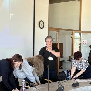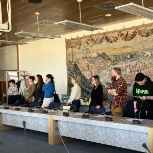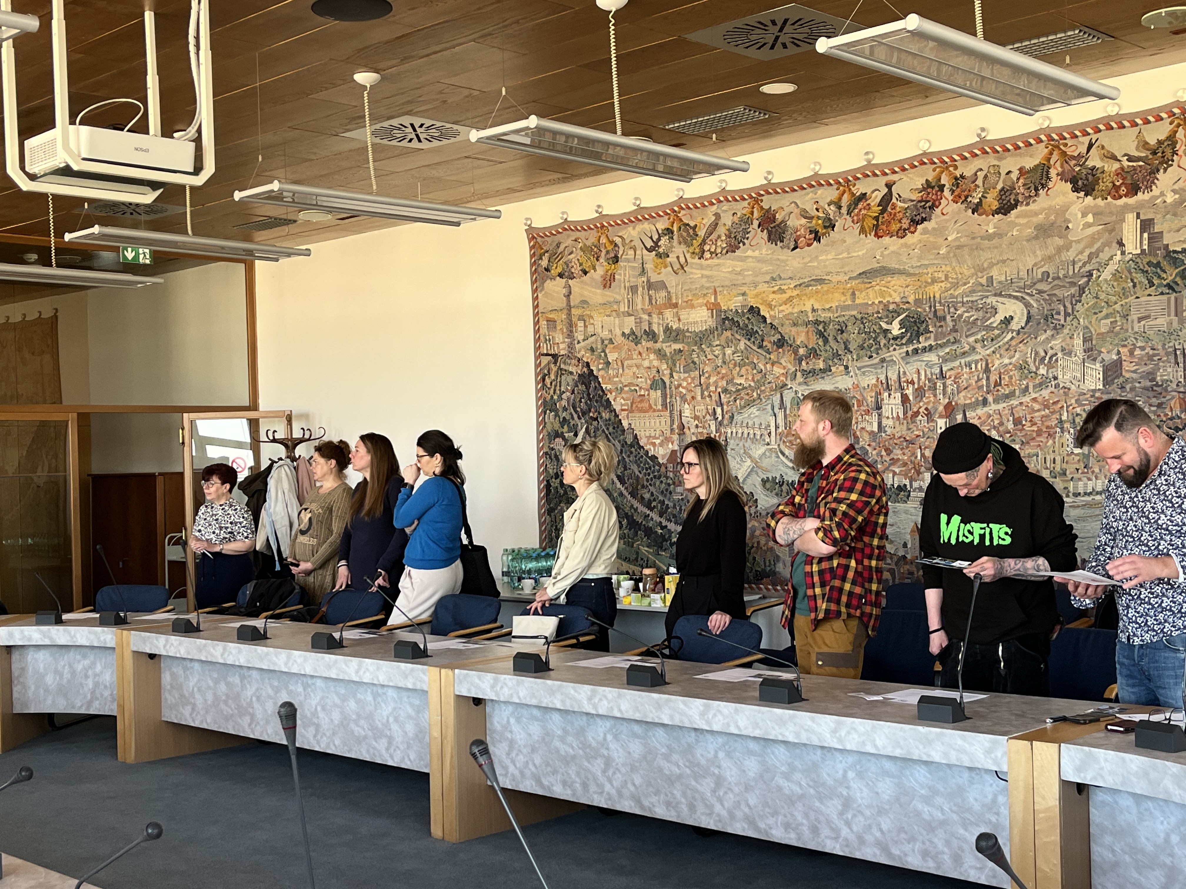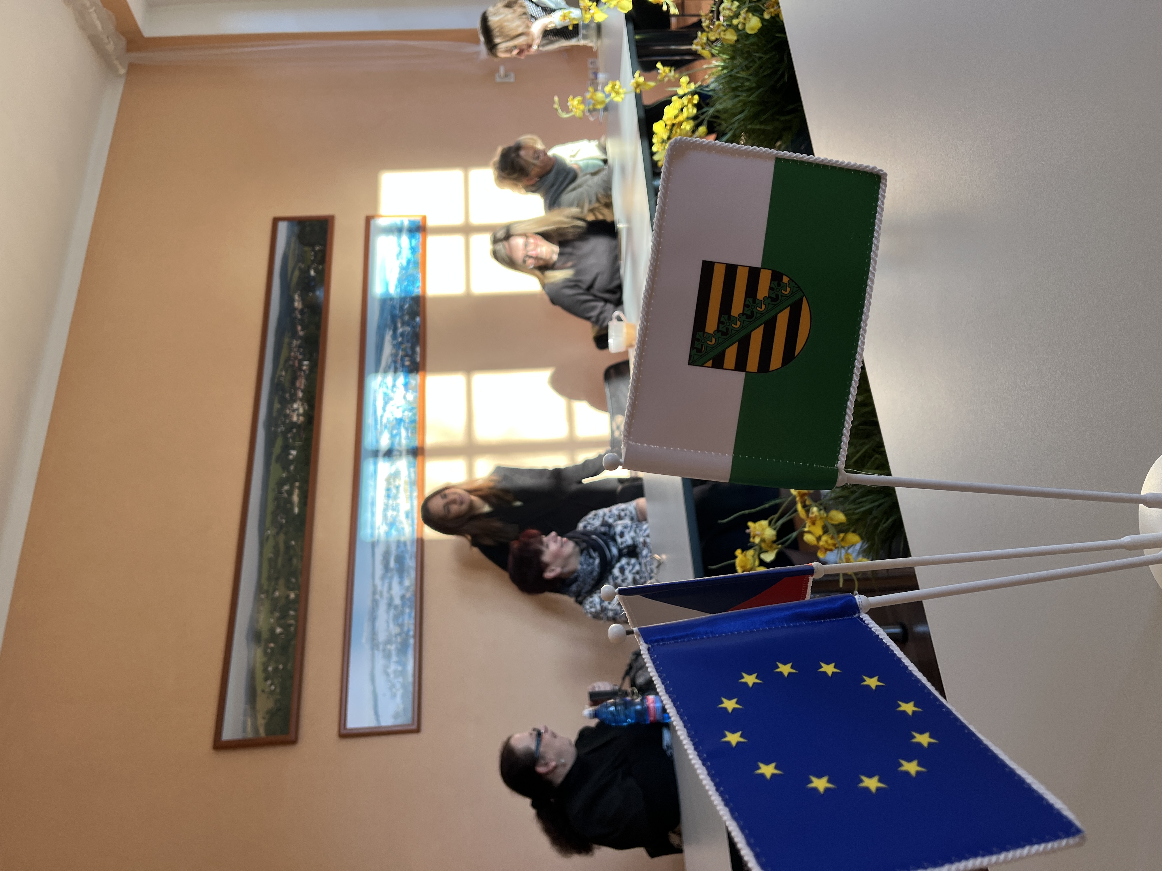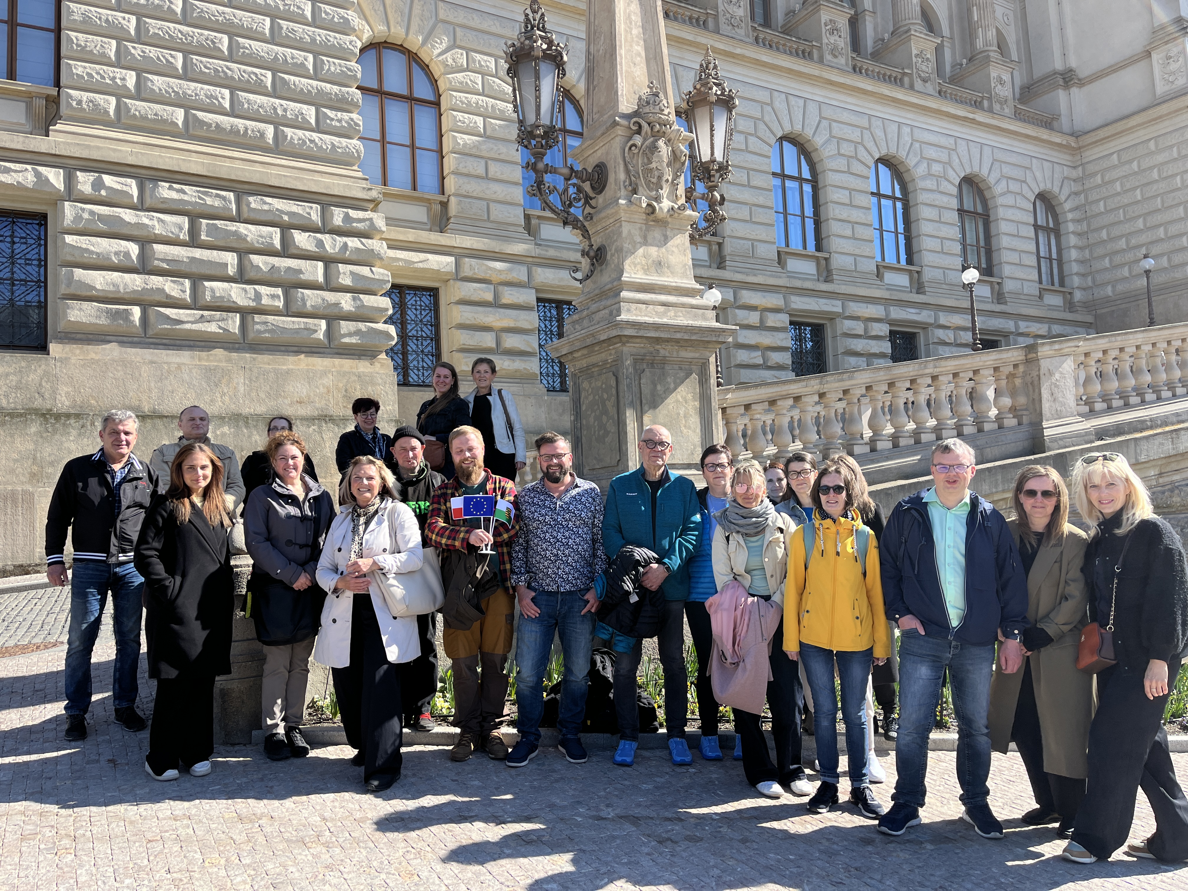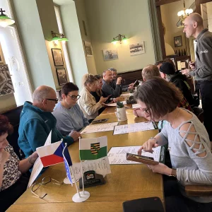 Am 22. April 2026 begaben sich 22 Vertreter der Gemeinden Vejprty und Bärenstein auf eine Exkursion nach Prag, um beim Klub für tschechisch-deutsche Partnerschaft bewährte Praktiken kennenzulernen. Sie trafen sich mit der Vorsitzenden des Vereins, Frau Lenka Šaldová, die einen sehr interessanten, anregenden und inspirierenden Workshop vorbereitet hatte, und zwar direkt im Neuen Gebäude des Nationalmuseums, das früher Sitz der Abgeordnetenkammer der Tschechischen Republik war. Der Erfahrungsaustausch zur grenzüberschreitenden Zusammenarbeit fand somit in einer wunderschönen Umgebung mit einem außergewöhnlichen Blick auf die Hauptstadt statt. Das Team erhielt zahlreiche wertvolle Informationen über die Funktionsweise der grenzüberschreitenden Zusammenarbeit des Vereins, über die Entwicklung des Vereins seit seinen Anfängen, aber auch wichtige Ratschläge zur Rechtsform dieser Einrichtung und zu praktischen Fragen wie der Buchführung und der Finanzierung der eigenen Aktivitäten. Die Diskussion wurde auch beim gemeinsamen Mittagessen fortgesetzt. Viele der gewonnenen Erkenntnisse werden die Mitglieder der Delegation in die Arbeitsgruppen einbringen, die uns im weiteren Verlauf des Projekts erwarten.