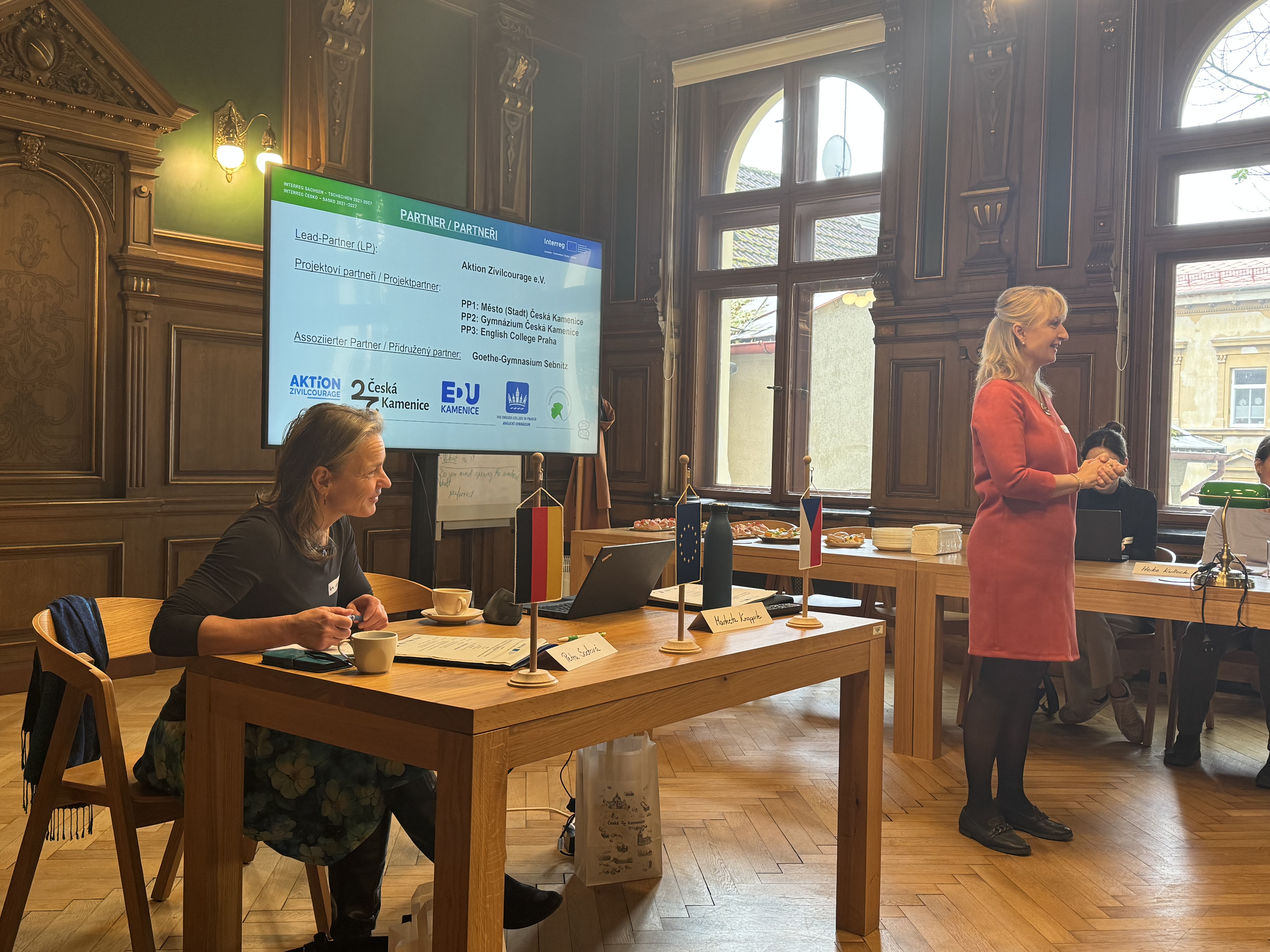 Zum Start des Projekts fand nun das Kick-off-Treffen in Česká Kamenice statt. Bei diesem ersten Treffen kamen alle Projektpartner zusammen – Vertreterinnen und Vertreter der Aktion Zivilcourage e. V., der Stadt Česká Kamenice, des Gymnasiums Česká Kamenice, des English Colleges in Prag und des Goethe-Gymnasiums Sebnitz.